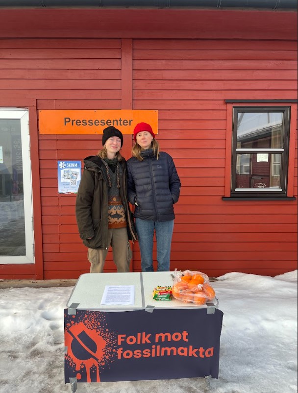 Organisasjonen Folk mot fossilmakta mente NM-arrangementet var en fin anledning til å rette søkelyset på den største trusselen mot vår nasjonalsport – klimakrisen. Foto: Folk mot fossilmakta
