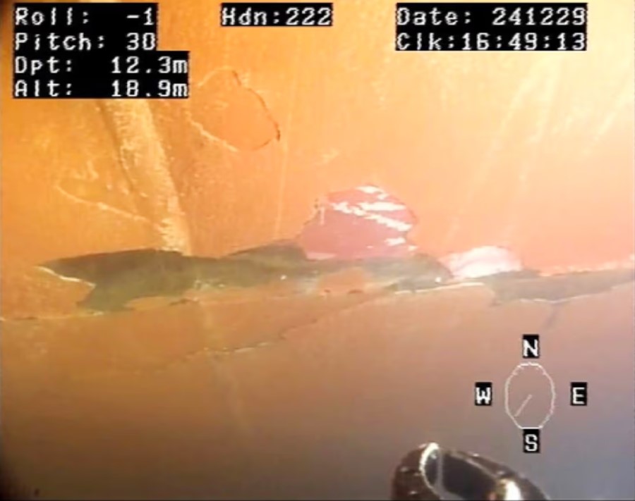 Nå viser nye bilder offentliggjort av den finske grensevakten tydelige skader på Eagle S, skader som skal være fullt ut forenlig med skader forårsaket av den løse ankerkjettingen.