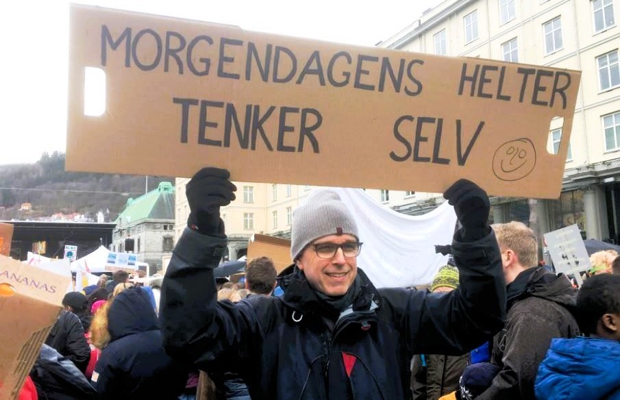 – Det er jo ikke Gretas skyld at bevegelsen har falt så mye sammen. Unge mennesker er utålmodige, og når de opplever at det ikke skjer noen forandringer, selv om tusenvis strømmet ut på gatene, så skjer det noe med deres motivasjon. Jeg lurer på om politikerne forstår hvor alvorlig dette er? Det de der og da skulle ha gjort var å vise muskler og lage et storstilt program for en kjempedugnad for klima, natur og miljø! Noen titalls milliarder til ekstra jernbanesatsing, til grønne utdanningsmuligheter – og arbeidsplasser, kraftig skjerpa krav til klimamerking, til varetilbud i butikkene, osv. Jeg har mye med unge folk å gjøre her på universitetet. De ønsker å være en del av løsningen, det er jeg overbevist om. Men da må de gis andre valgmuligheter enn i dag. Ellers så brer usikkerhet og mismot seg, og så blir det bare karakterene og karrieren som opptar dem, det er jo helt forståelig!