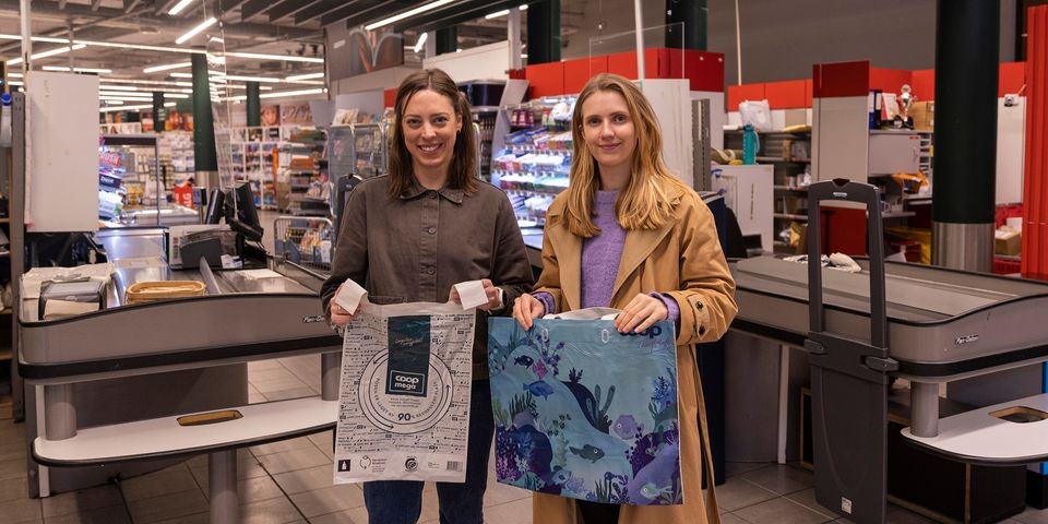 Det mest miljøvennlege valet er å bruke handlenett og kaste søpla i avfallsposar frå rull. Det Live Bøyum (til venstre) og Hanna Seglem Tangen (til høyre) har kartlagt bruken av handlenett til daglegvarehandel.
