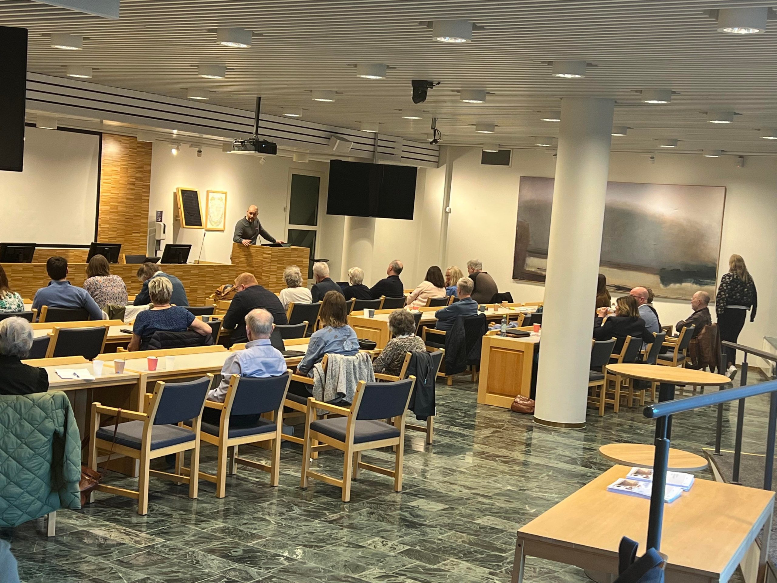 Været innbød ikke akkurat til å sitte inne på politiske møter da Høyre på torsdag inviterte til ett nytt åpent møte . Denne gang hadde de tatt høyde for publikumsinteressen, og sikret seg kommunestyresalen.