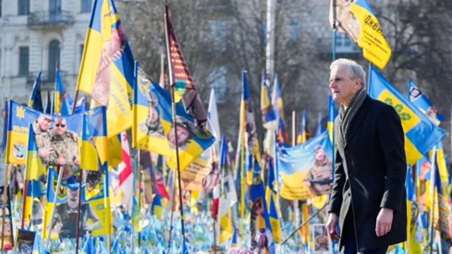 – I dag markerer vi den sterke motstandskraften i det ukrainske folk. I tre år har de stått i kampen for frihet hver dag. De kjemper for Ukraina, men også for Europas sikkerhet og et verdenssamfunn bygget på folkerett og demokratiske verdier, sier statsminister Jonas Gahr Støre.