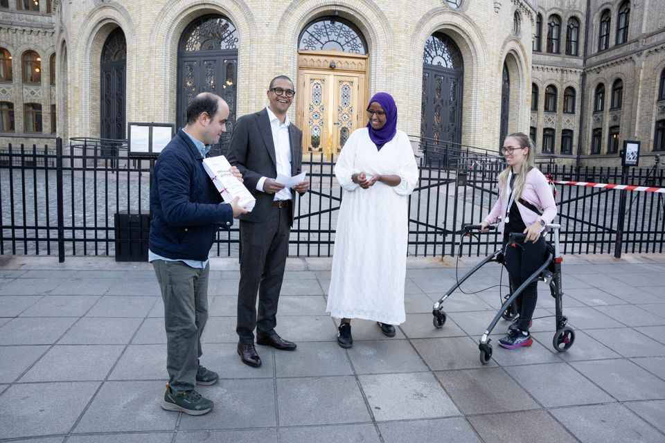 Sammen med medlem i CP-foreningen Felix Andersen og leder av CP-foreningens ungdomsnettverk Sofie Østerbø Jansen overleverte han underskriftene til nestleder i SV og helsepolitisk talsperson Marian Hussein utenfor Stortinget onsdag formiddag.