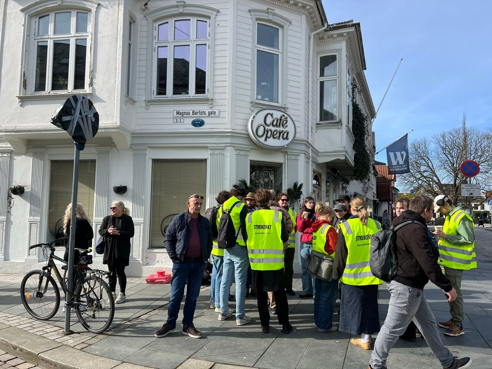 Trist at det skal være slik i 2025. Men noen ganger må man sette hardt mot hardt mot gjenstridige arbeidsgivere. Fredag 21. mars la 25 medlemmer i Fellesforbundet ved Café Opera ned arbeidet. Kravet var enkelt: Tariffavtale.