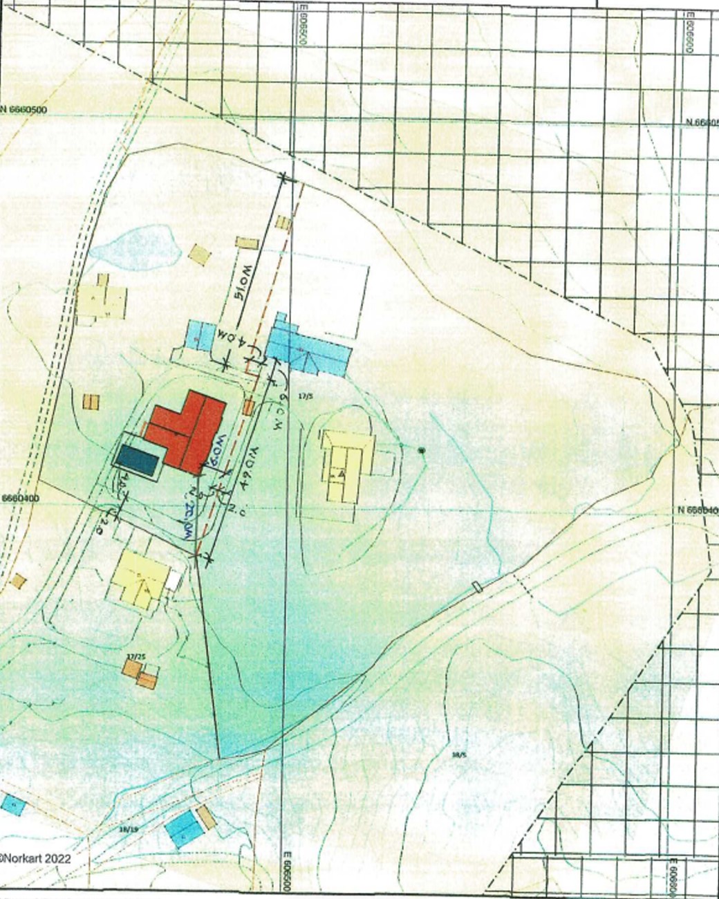 Tiltaket, som er det det kalles når man gjør noe med en eiendom, er avhengig av at det gis dispensasjon fra kommuneplanens arealdel. Dette da eiendommen i nevnte plan er avsatt til LNF-område (landbruk, natur, friluftsliv). Tiltaket er følgelig i strid med kommuneplanen, nærmere bestemt punkt 5.1.